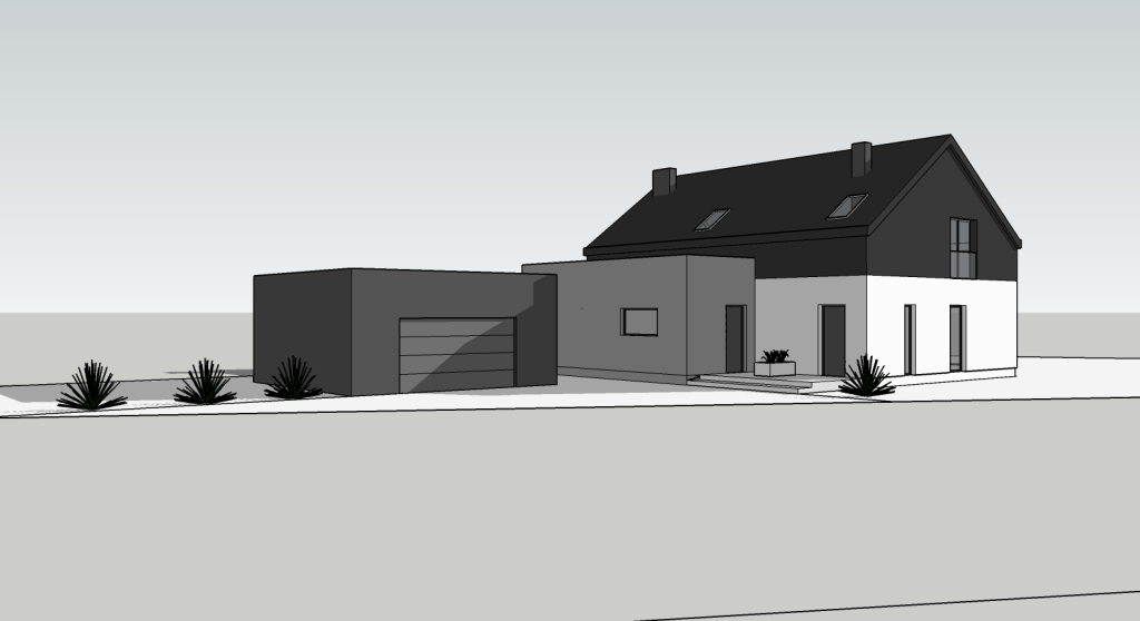 Projekt domu jednorodzinnego z pracownią oraz wolnostojącym garażem. Lekka, nowoczesna bryła oraz wyważony metraż tworzą subtelną i elegancką całość. Funkcje poszczególnych części domu wyznaczają także forma i kolorystyka elewacji, liczne przeszklenia, zgodnie z życzeniem Inwestora, maksymalnie otwierają wnętrze domu na ogród w południowej części działki.